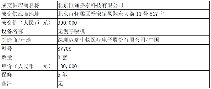 中日友好醫院2025年無創呼吸機采購項目成交結果公告